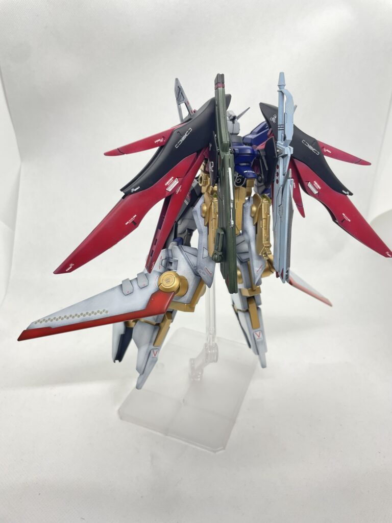今回の制作では、グラデーション塗装に特に力を入れ、前回作成したデスティニーガンダムとドッキングしても違和感が無いように工夫しました!