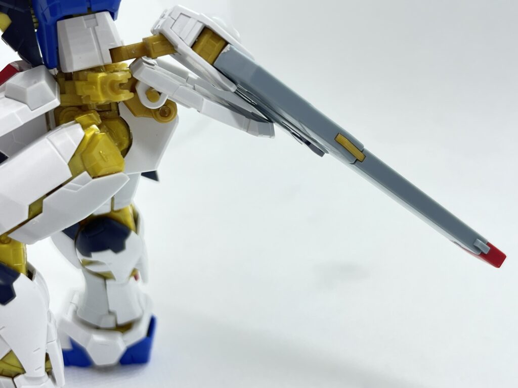 ちなみに、ビームサーベルを連結した状態で、可動手に持たせるのは非常に大変です。