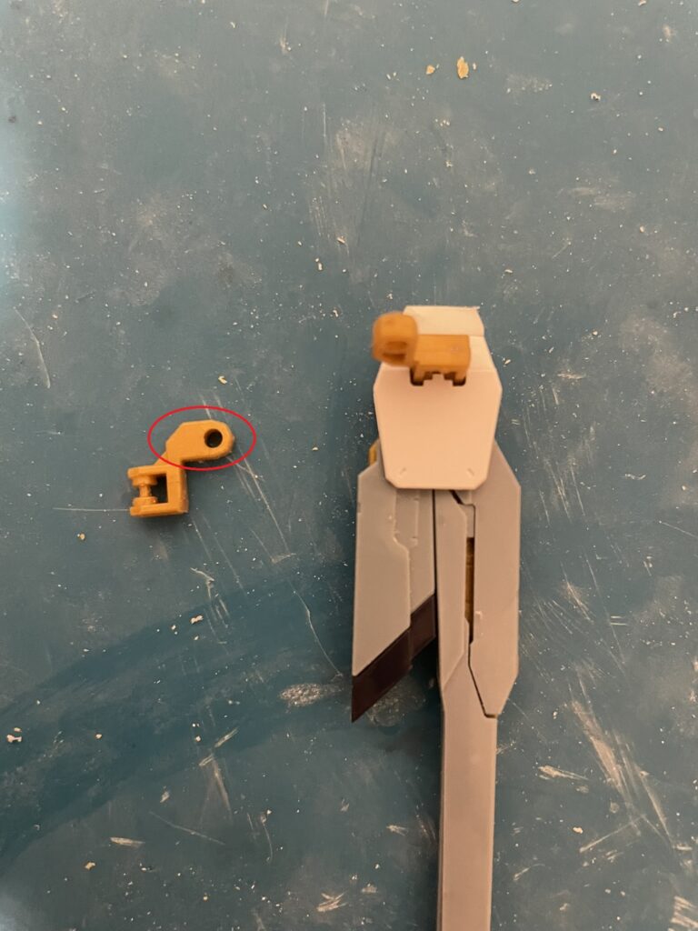 今度はサイドアーマーとアドバンスジョイントを接続するパーツを一部カット。